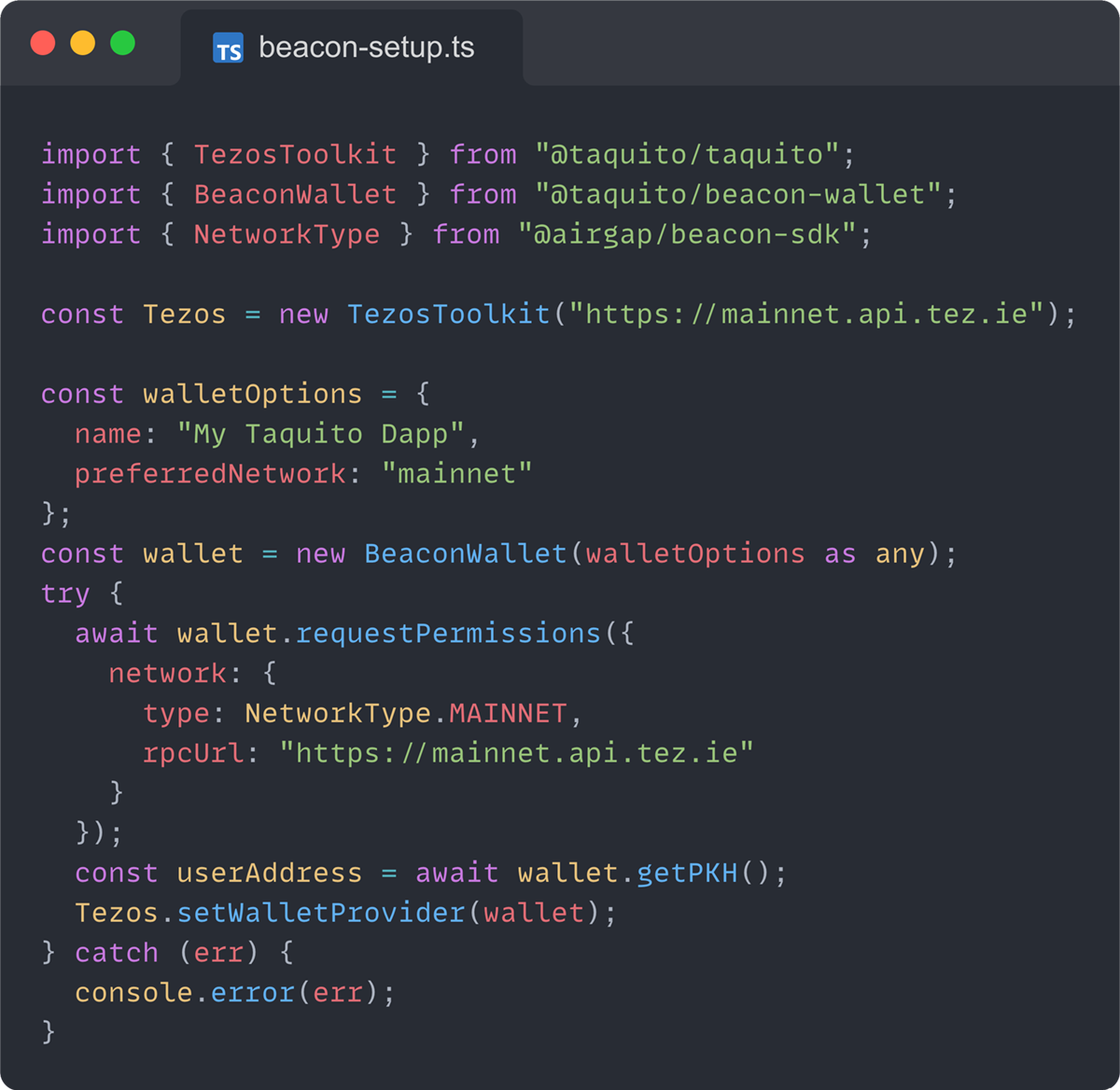Taquito uses TypeScript to extend JavaScript so that you can catch errors earlier.
